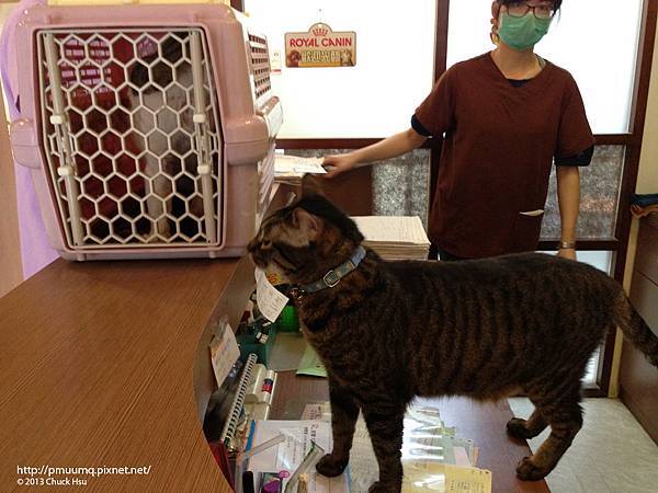 3點左右帶著小白臉搭小黃去到木柵的『達仁動物醫院』,簡單地告知故事的發生經過,看看是否能讓他住院2晚,無奈醫院病房都滿床了.....我默默的帶著小白臉走出醫院在外面的椅子上坐著,上網看到有網友留言附近還有家『文心動物醫院』,馬上在打電話過去詢問,把詳細的過程在電話中解釋完,醫生說他們最近處理很多TNR的貓目前也客滿也沒辦法收留....,但達仁跟文心兩家的醫生都問:當初看的醫生有沒有開藥?照理說拔牙完是要吃藥會比較好的!,掛完電話我又帶著小白臉進去達仁掛號了,秤了重寫完病歷開了7天的藥,想想這樣到處碰壁也不是辦法,最後只好自己再帶回來照顧......,