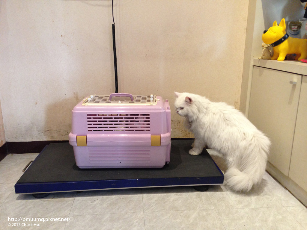 雖然碰ㄧ鼻子灰,不過有趣的事還是有的,在動物醫院寫病歷時,醫院裡的喵就跳上櫃台來探望小白臉,後來在進來秤重的時候,兩隻貓還排隊來探病,好可愛好有趣。